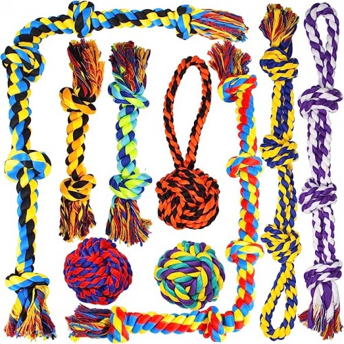 • HUGE VALUE INTERACTIVE DOG TOYS FOR BOREDOM: 9 bundle dog toys large breed are worthier than only one dog rope toy. Plus, more ropes more fun options for your aggressive fur friend, enjoy chewing and tug of war dog toy games.