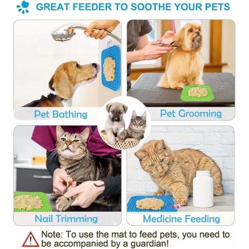 - 【REDUCES ANXIETY, BOREDOM AND DESTRUCTIVE BEHAVIOR】Feeding Mat Helps calm and soothe your pet to release endorphins through the promotion of licking. This dog treat mat is a safe alternative for your dog to lick. Great for stressful times such vet visits, bath time, nail clipping, injury recovery as well as thunderstorms and fireworks